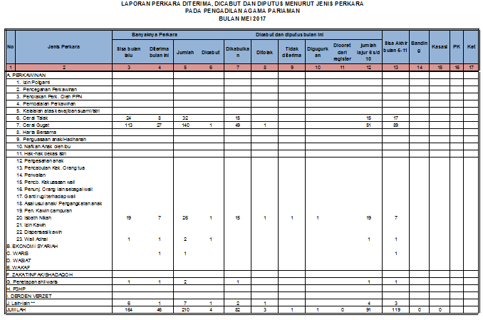 Laporan Perkara Pada Pengadilan Agama Pariaman Bulan Mei 2017