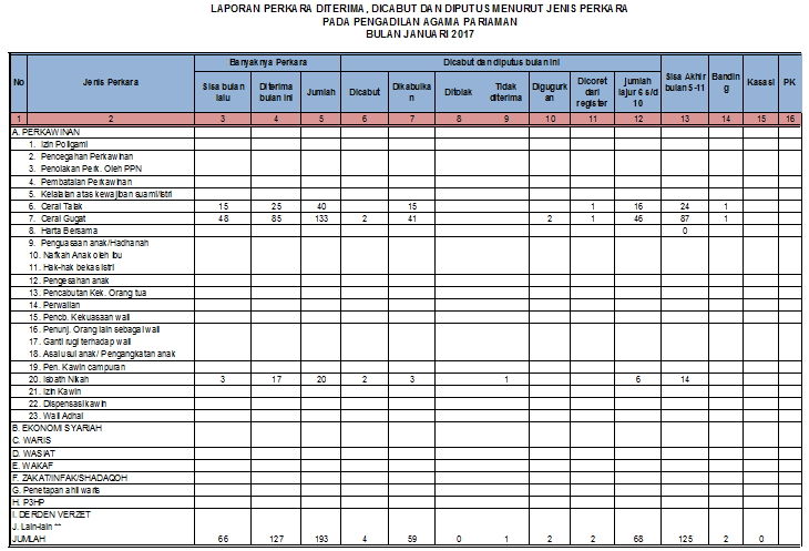 Revisi untuk Laporan Perkara Pada Pengadilan Agama Pariaman Bulan Januari 2017 | Satu Data Padang Pariaman